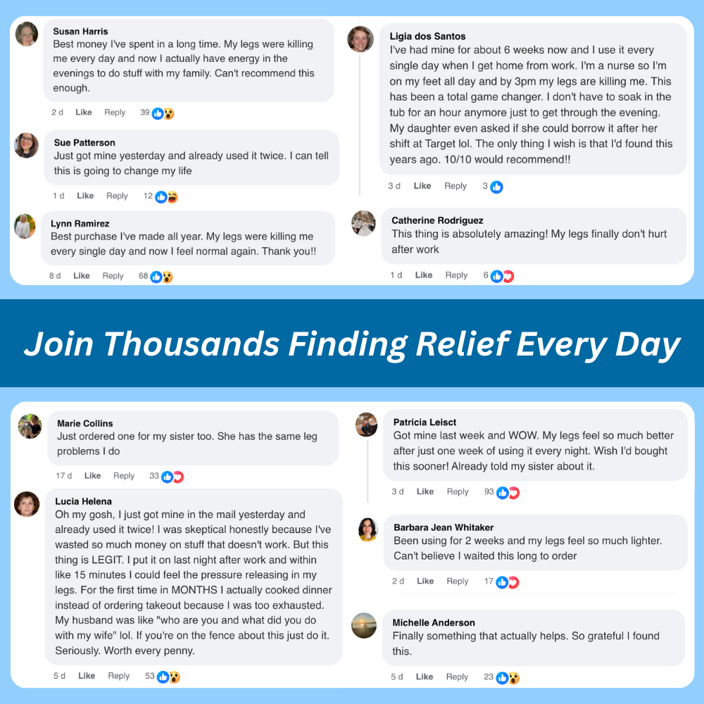 This thing is amazing! My legs were so heavy and painful I could barely make it through the day 😫 Now I actually have energy in the evenings. Wish I'd bought this years ago! This thing is amazing! My legs were so heavy and painful I could barely make it through the day 😫... This thing is amazing! My legs were so heavy and painful I could barely make it through the day 😫 Now I actually have energy in the evenings. Wish I'd bought this years ago!